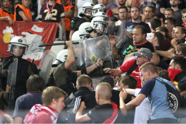 Η ένταση πρωτοξεκίνησε με ανταλλαγή συνθημάτων ανάμεσα στους οπαδούς των δύο ομάδων. Κάποιοι της Μπάγερν επιχείρησαν να σκαρφαλώσουν πάνω σε πλέξι γκλας αναγκάζοντας την αστυνομία να επέμβει!